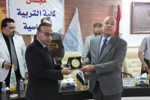 وفي ختام الاجتماع، أشاد مجلس كلية التربية الأساسية بمشاركة السيد العميد ومقترحاته القيمة التي تعكس حرصه على تطوير المسار الأكاديمي والتربوي، كما تم تكريمه من قبل رئيس جامعة الكوفة بكتاب شكر وتقدير ودرع الإبداع، تثميناً لجهوده المتميزة في دعم المسيرة التعليمية في العراق.